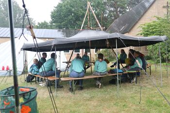 Dazu trugen mit Sicherheit die drei Jurtendächer, die aufgestellt waren bei, aber auch das pfadfinderische Improvisationstalent, das eine „Desinfektionsstraße“ am Ende jeden Tages entstehen ließ, so dass für den nächsten Tag alles wieder frisch bereitet war. Manches aus dem typischen Sommerlagerplan konnte gut adaptiert werden, anderes wurde entsprechend umgestaltet: Anstatt Postkarten nach Hause zu schicken, schrieben und verschickten die Pfadfinder Briefe an Pfadfinderstämme aus den jeweiligen Gastländern.